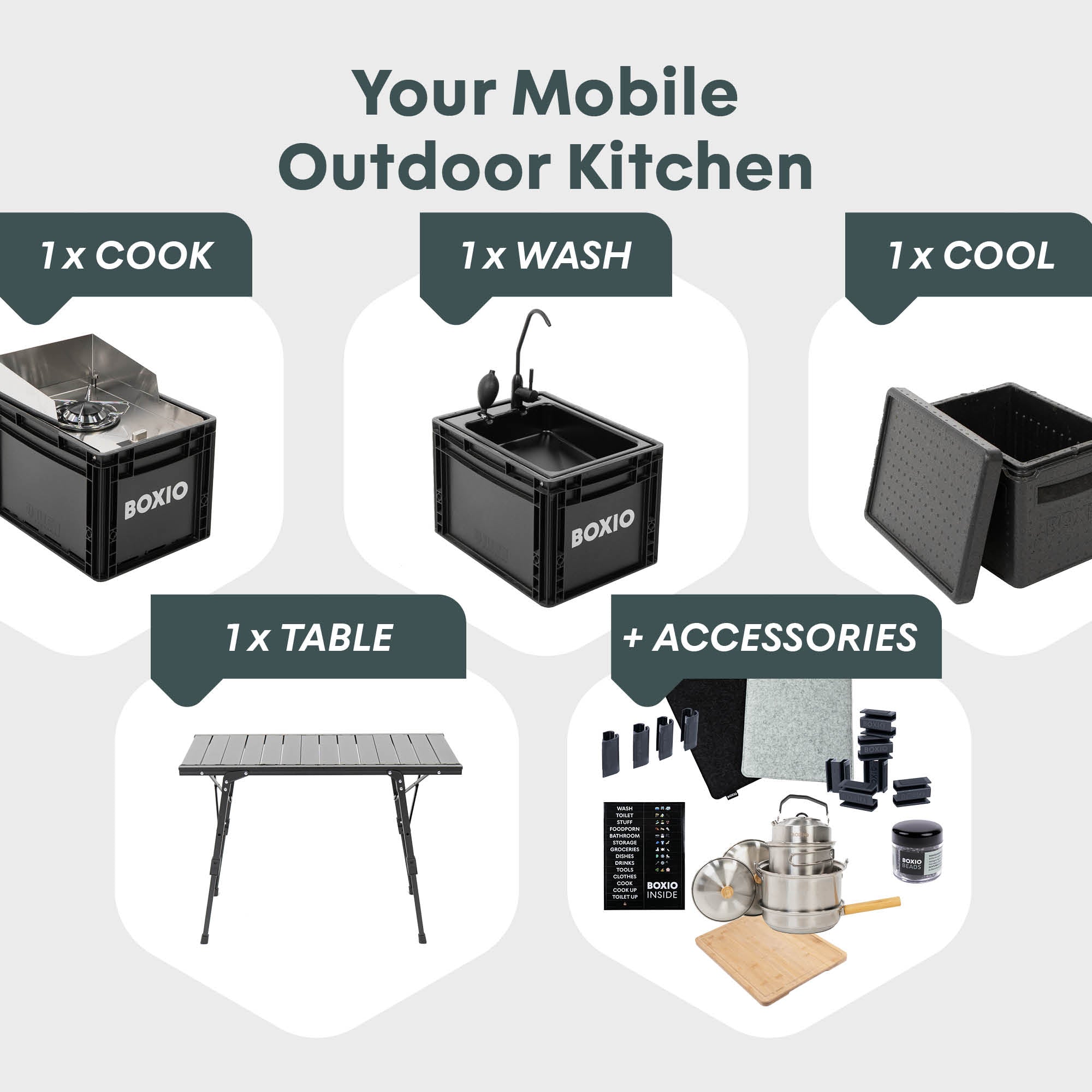 BOXIO KITCHEN PLUS Mobile outdoor kitchen with standing height